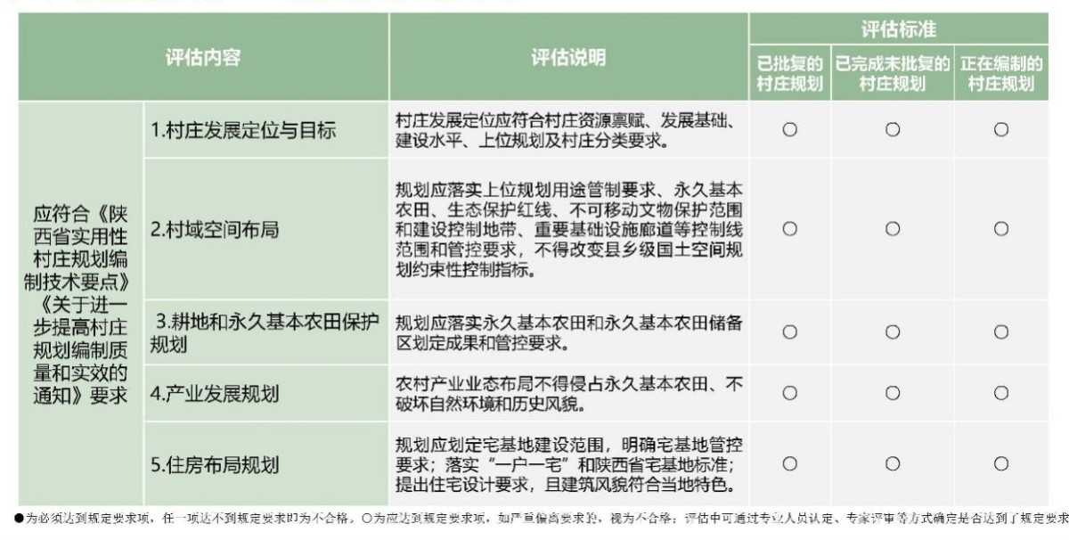 2024年9月,陜西省自然資源廳《關(guān)于開展村莊規(guī)劃編制質(zhì)量評估工作的通知》要求,“以縣為單位,按照《陜西省村莊規(guī)劃質(zhì)量評估技術(shù)指南(試行)》分類開展評估工作。”