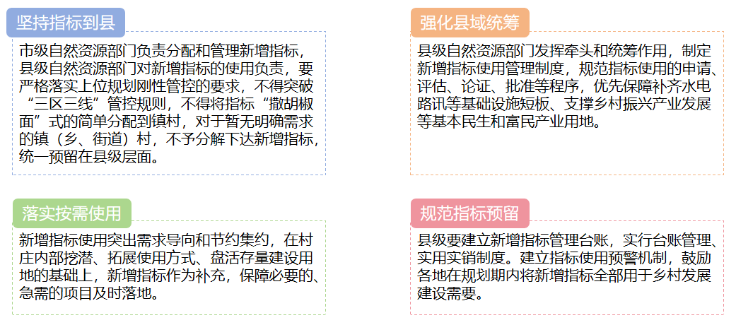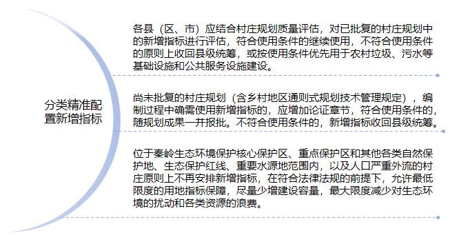 為切實加強國土空間規(guī)劃實施管理,嚴(yán)格實施國土空間用途管制,精準(zhǔn)發(fā)揮新增農(nóng)村建設(shè)用地指標(biāo)對鄉(xiāng)村振興支撐保障作用。陜西省自然資源廳于202412月下發(fā)了《關(guān)于規(guī)范國土空間規(guī)劃中新增農(nóng)村建設(shè)用地指標(biāo)使用的指導(dǎo)意見》(試行),對新增農(nóng)村建設(shè)用地指標(biāo)使用提出了指導(dǎo)意見: