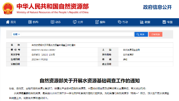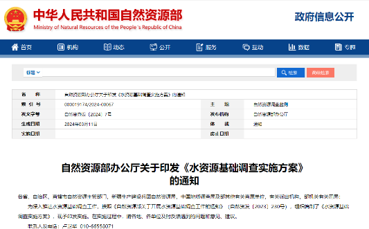 水是生命之源,是基礎(chǔ)性自然資源和戰(zhàn)略性經(jīng)濟(jì)資源,是生態(tài)環(huán)境的控制性要素,在經(jīng)濟(jì)、社會發(fā)展和國家安全中具有極其重要的地位。同時(shí),水資源是實(shí)施山水林田湖草沙一體化保護(hù)和系統(tǒng)治理的關(guān)鍵因素,為切實(shí)履行自然資源部“兩統(tǒng)一”職責(zé),2023年11月20日自然資源部發(fā)布《自然資源部關(guān)于開展水資源基礎(chǔ)調(diào)查工作的通知》(自然資發(fā)〔2023〕230號)文件,于2024年3月11日自然資源部發(fā)布《自然資源部辦公廳關(guān)于印發(fā)水資源基礎(chǔ)調(diào)查實(shí)施方案的通知》(自然資辦發(fā)〔2024〕7號)文件,要求各地方實(shí)施水資源基礎(chǔ)調(diào)查工作。