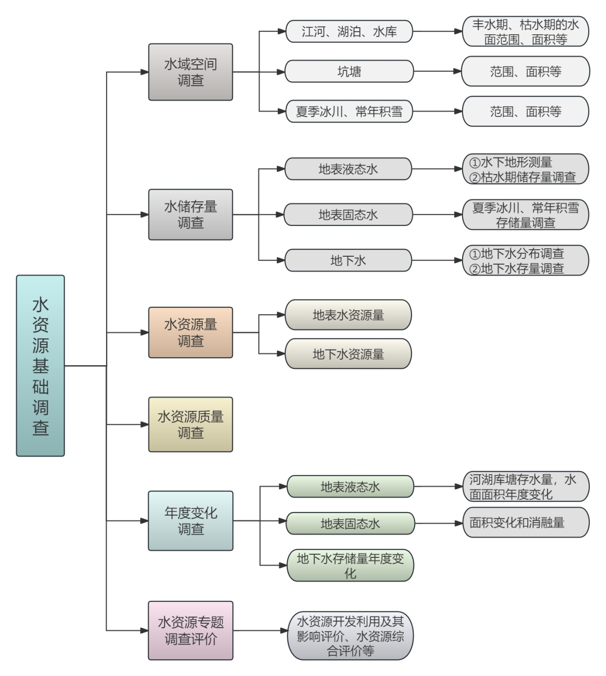 立足自然資源系統(tǒng)履行“兩統(tǒng)一”職責(zé),突出調(diào)查數(shù)據(jù)成果的基礎(chǔ)性和空間性,填補(bǔ)以往水資源調(diào)查工作空白,形成具有自然資源特色的水資源基礎(chǔ)調(diào)查成果,主要任務(wù)如圖所示。
