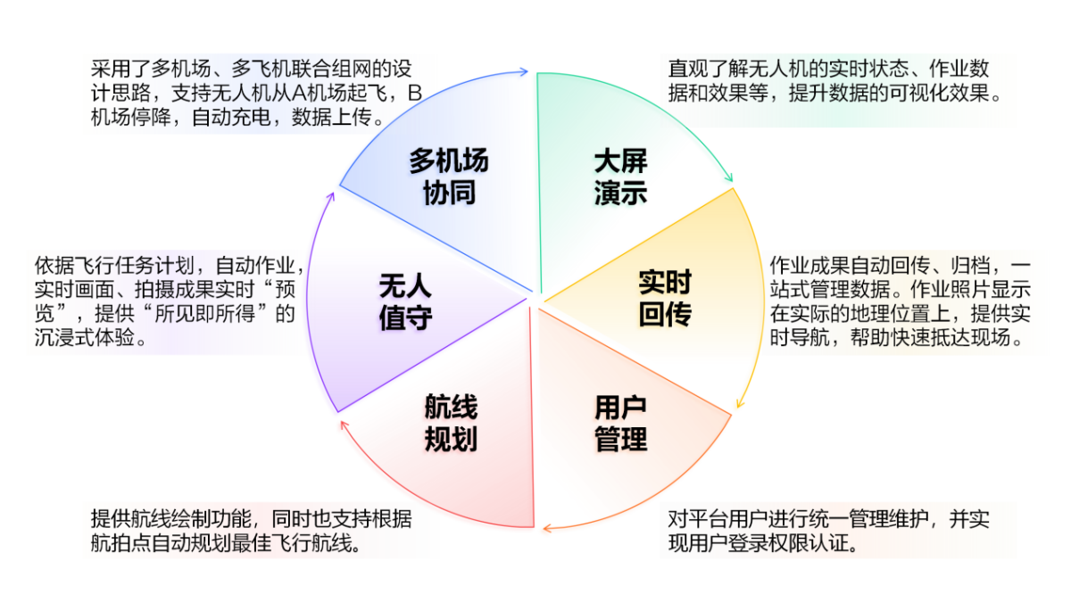 中策低空無人機(jī)監(jiān)測(cè)網(wǎng),一套監(jiān)測(cè)平臺(tái)+多點(diǎn)監(jiān)測(cè)無人機(jī)。采用網(wǎng)絡(luò)形式設(shè)置無人機(jī)機(jī)場(chǎng),覆蓋全域,監(jiān)測(cè)平臺(tái)管理無人機(jī)監(jiān)測(cè)和協(xié)同作業(yè),有效提高作業(yè)效率和協(xié)同性,實(shí)現(xiàn)監(jiān)測(cè)全域覆蓋。空網(wǎng),蜂窩狀分布,集群式協(xié)同飛行作業(yè),全天候24小時(shí)無人值守,自主飛行,滿足高效的無人機(jī)低空數(shù)據(jù)采集,同時(shí)支持云端自動(dòng)化數(shù)據(jù)處理、數(shù)據(jù)在線加工和 AI智能分析。降低無人機(jī)作業(yè)門檻,提升無人機(jī)使用價(jià)值,應(yīng)用空網(wǎng)為各行業(yè)賦能。
